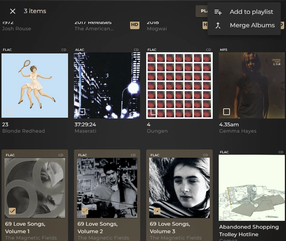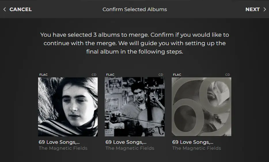 Previously, the multi select tool for merging albums helped combine albums that had been split by varying resolutions or formats, known as a multiformat merge, or compilation albums that had separated into individual albums for each track, known as a compilation merge.