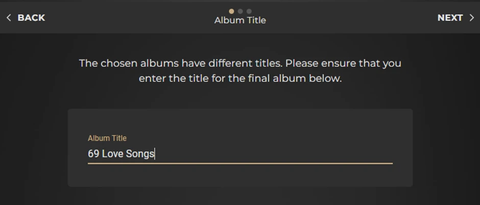 Having identified there are inconsistent Titles across the 3 albums, You are then directed to enter the correct Album Title that you wish to be apply. In this example, I revise ’69 Love Songs, Volume 3’ simply to ’69 Love Songs’.