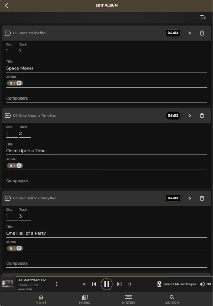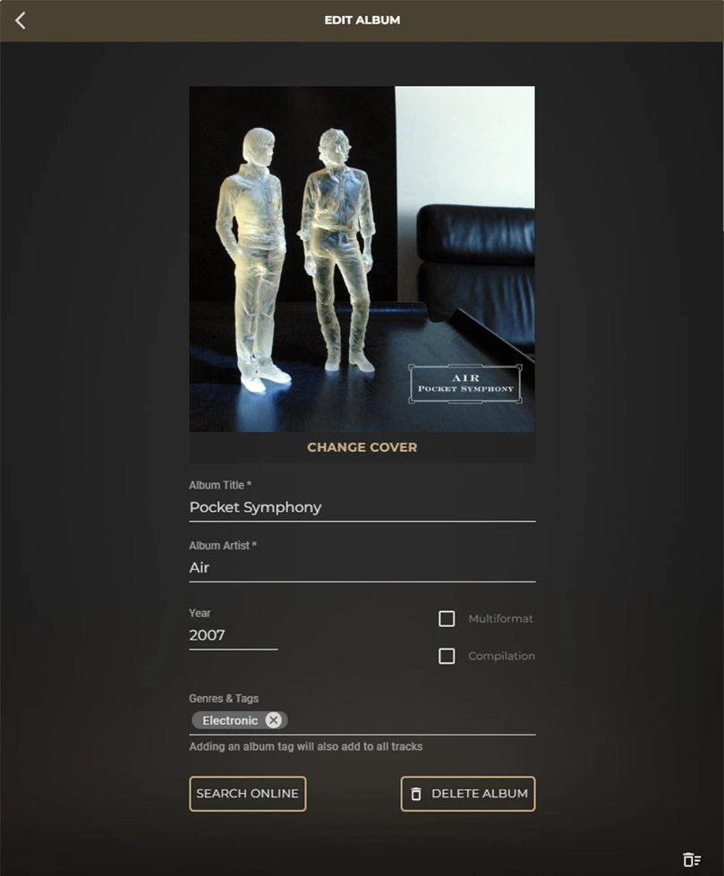 The Sense APP offers you various ways to edit your music library. In this article, we will focus on the ability to change your album covers, the album metadata, and editing the track metadata.