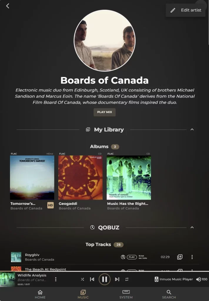 The Sense App provides several ways to edit your music library. In this article, we will focus on how to edit the details for artists saved in your library.