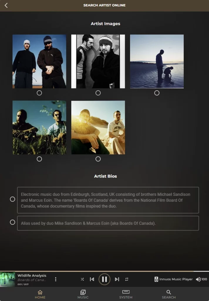 To further streamline the experience, you can also obtain different artist cover images online as well as alternative biographies when available.