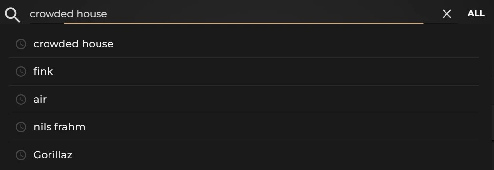 You can filter your search more specifically to look only within local files or via a specific streaming service by selecting ALL which will reveal a drop-down menu, allowing you to refine your search parameters.
