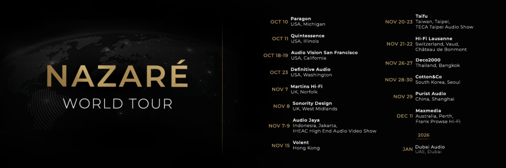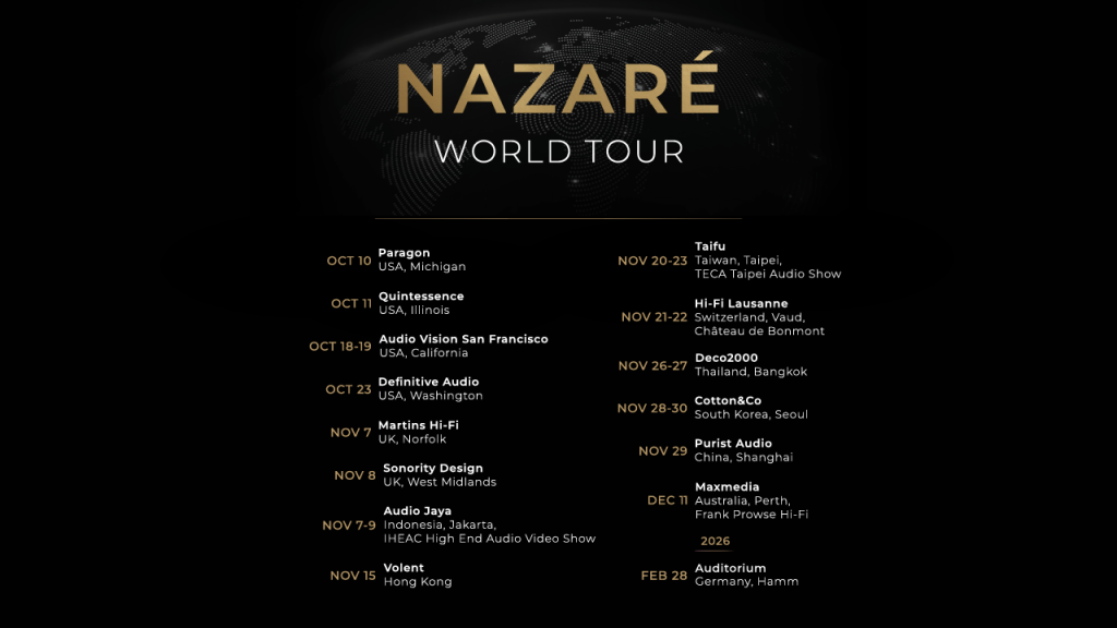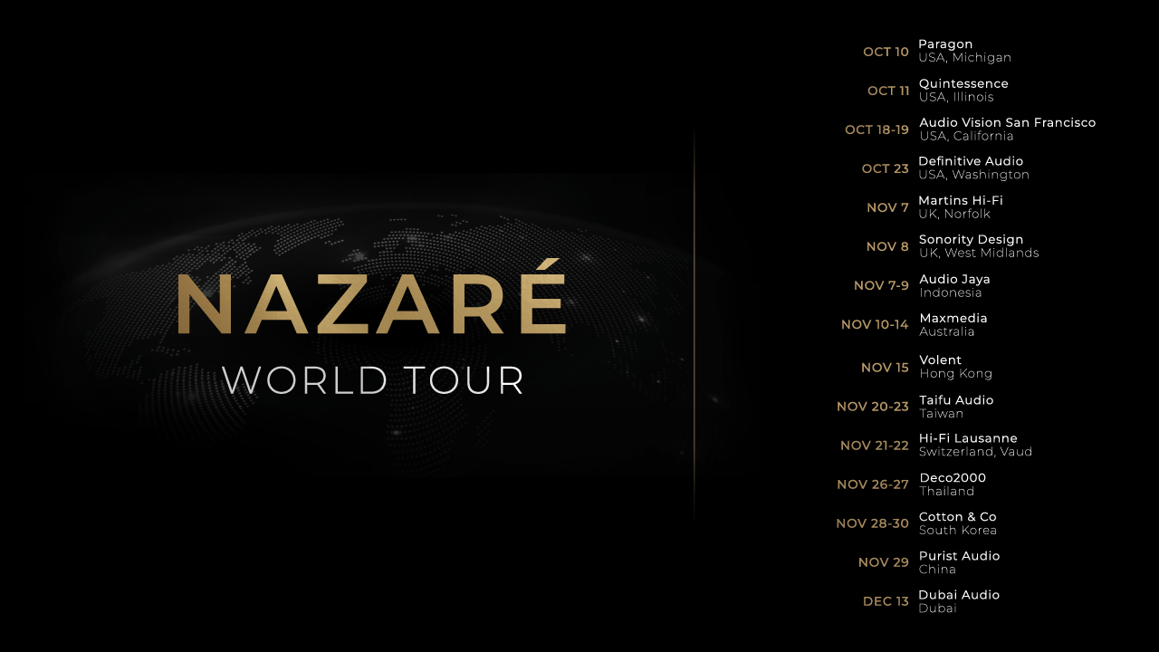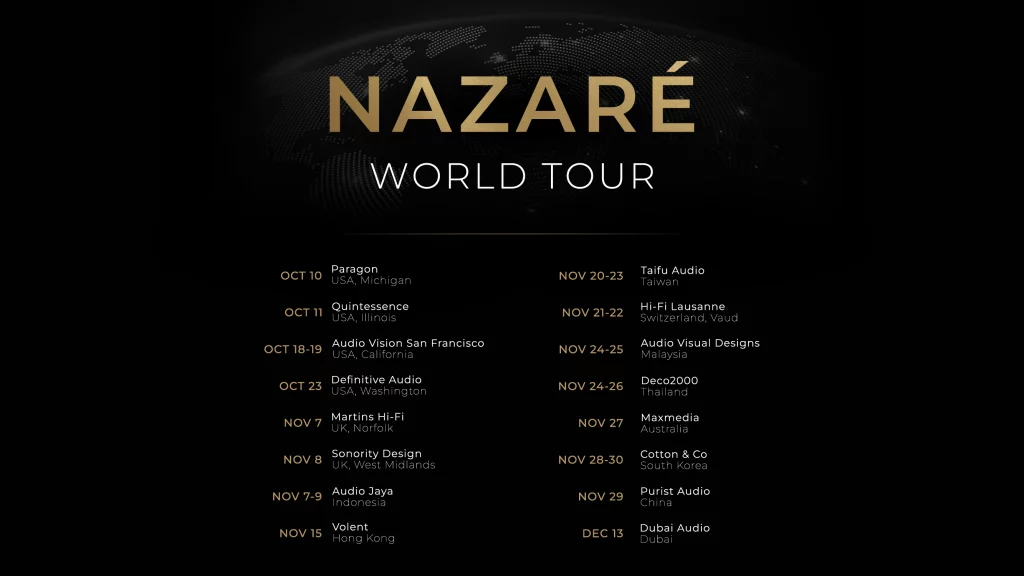 The NAZARÉ World Tour is your chance to feel what it truly means to listen. At unforgettable events across the globe, you’ll discover how NAZARÉ reveals every note, every breath, every silence with extraordinary clarity and depth. From the intimate textures of a single voice to the power of a full symphony, you’ll hear music unfold as if the performance is happening right in front of you.
